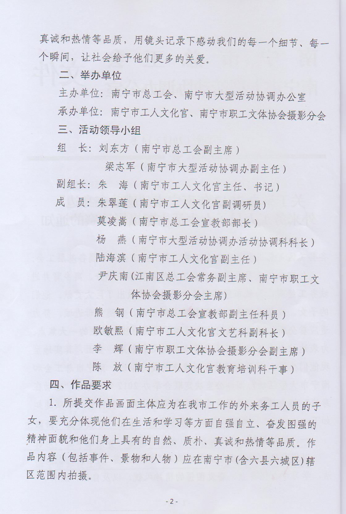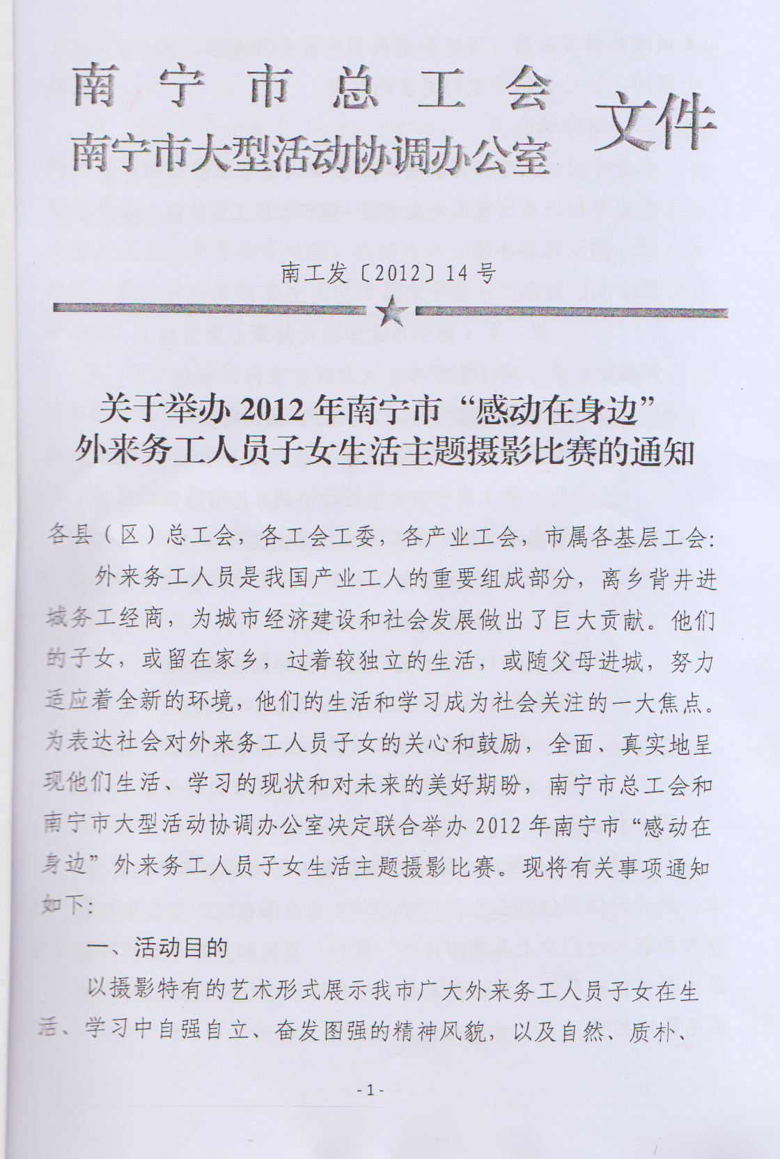 關于轉發(fā)《關于舉辦2012年南寧市“感動在身邊”外來務工人員子女生活主題攝影比賽的通知》