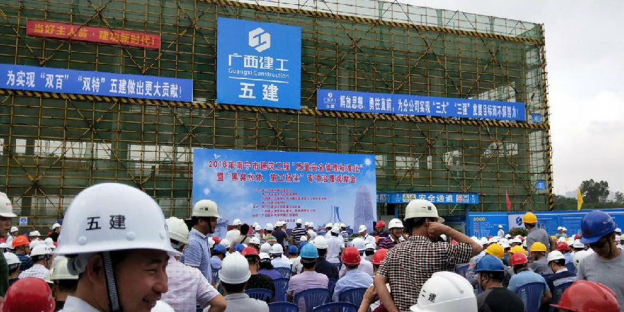 2018年5月11日,公司技術(shù)管理部門有關(guān)負(fù)責(zé)人和南寧市內(nèi)各項(xiàng)目總監(jiān),參加了由南寧市城鄉(xiāng)建設(shè)委員會(huì)、南寧市安全生產(chǎn)管理監(jiān)督局等單位主辦的2018年南寧市建筑工程“質(zhì)量安全管理標(biāo)準(zhǔn)化”暨“黑臭水體、施工揚(yáng)塵”專項(xiàng)治理觀摩會(huì)。觀摩項(xiàng)目是廣西建工五建總承包施工的“廣西醫(yī)科大學(xué)東盟國(guó)際口腔醫(yī)學(xué)院項(xiàng)目北地塊主體工程”項(xiàng)目。觀摩會(huì)引千人觀摩,持續(xù)2小時(shí)。觀摩主要內(nèi)容如下: